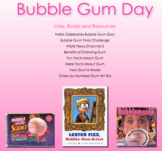 And check out this post, Two Libraries, One Voice Celebrate Bubble Gum Day for lots of ideas how John Schu and I celebrated Bubble Gum Day too.
