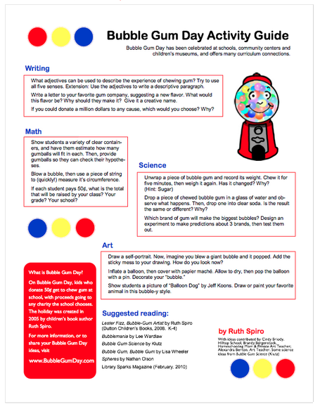 The website also includes an Bubble Gum Activity Guide…..