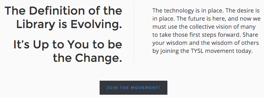 I am very excited about this new movement that is going to change school libraries, communities, education and the lives of so many. It is called TYSL.